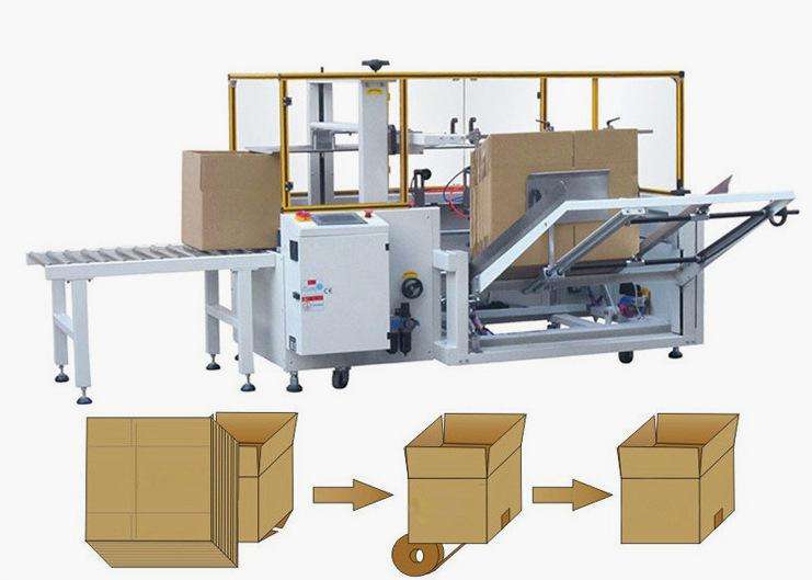 紙箱成型機(jī)是指自動(dòng)完成開(kāi)箱、成形、下底折葉折曲,并現(xiàn)時(shí)完成下部分膠帶粘貼,將疊成紙板的箱板打開(kāi),箱子底部按一定程序折合,并用膠帶密封后輸送給裝箱機(jī)的專用設(shè)備,又名紙箱開(kāi)箱機(jī)。
